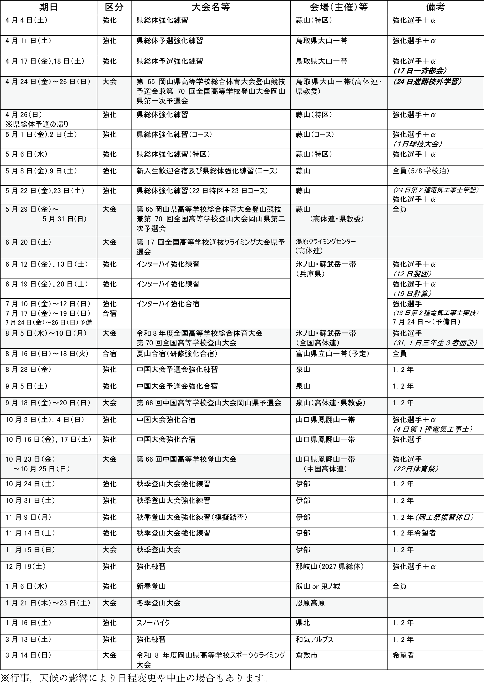 - ● 中国高等学校登山大会岡山県予選会(蒜山一帯)/9月