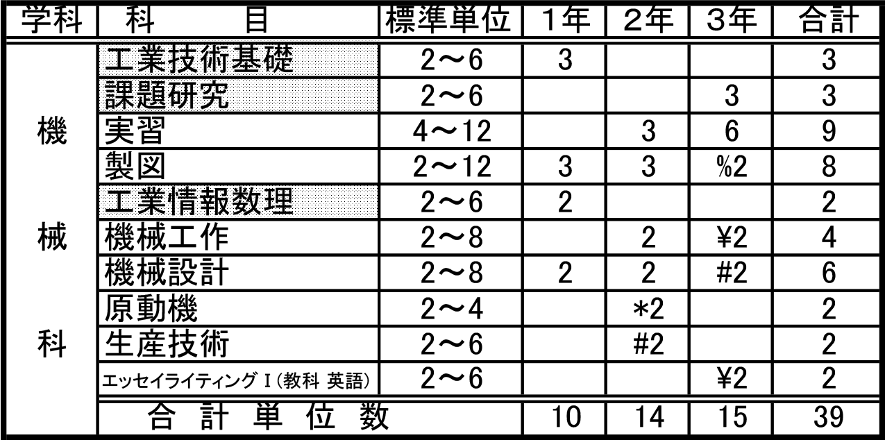 網掛けは必履修科目(専門教科は原則履修科目)を示す