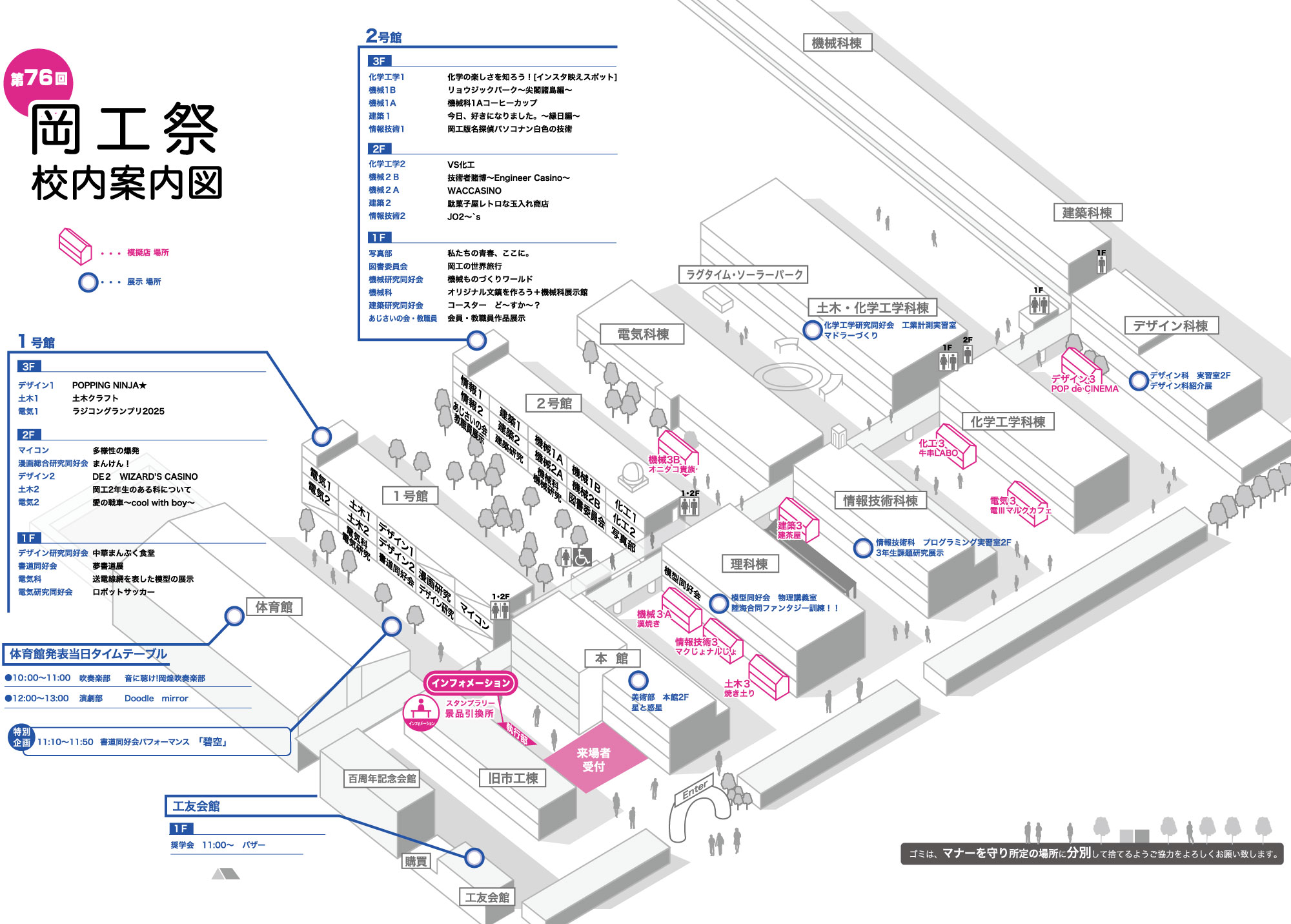 本校では、駐車スペースが全く確保できない状態になっております。したがって、岡工祭にお越しの皆様には学校内への車両の進入、駐車をご遠慮いただいております。ところがその際、周辺道路への違法駐車並びに、近隣の商業施設等への駐車車両が多く、各店舗の皆様にたいへんご迷惑をお掛けしており、警察への通報も余儀なくされる状態になっております。つきましては、以上のことをご理解のうえ、岡工祭へお越しの際には、できる限り公共交通機関を利用していただきますようにお願いします。やむを得ず自家用車でお越しの際は、岡山駅周辺の有料駐車場をご利用ください。