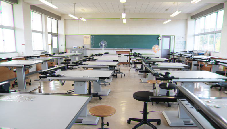 精密工作実習室 OHPが設置された教室で、授業を行います。3階