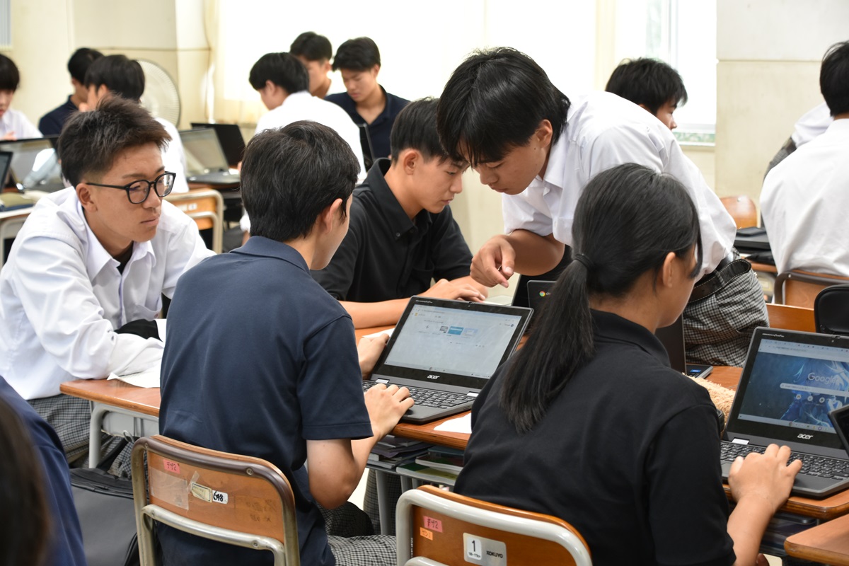 令和7年9月17日(水)本校の学習活動には、「OCP(OKAKO CREATIVE PROJECT おかこう クリエイティブ プロジェクト)」という取り組みがあります。中でも2年生の総合的な探究の時間に実施している「OCP演習Ⅰ・Ⅱ」では、課題発見解決型学習法(PBL)を用いて、生徒の様々な非認知能力の育成に努めています。