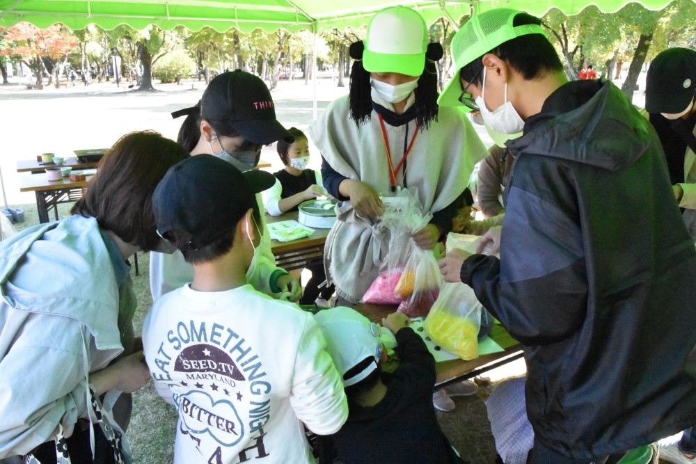 小学生は「お姉さん、こここうしたいんだけど、どうするん?」「あー、とれたぁー!」と言いながら真剣な表情で製作に取組んでいました。高校生のお兄ちゃんお姉ちゃんの対応も笑顔で、保護者の方とも話しをしながらサポートしていました。保護者の方からは「高校生ってこんなに自分たちで考えて行動できるんですね!子どもも楽しんでいるので、本当にありがとうございます。」と、嬉しいお言葉をいただきました。あっという間の1時間半でした。唯一生徒の表情がこわばっていたのは、取材を受けていたときかな^^ 緊張するよね。
