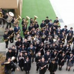 宿舎の山陽ハイツには、OBの方々も様子を見に来て下さいました。岡工卒業後も吹奏楽部をサポートしてくださっていて、とても頼もしい存在です。合宿名物の、先輩による「儀式」(内容は秘密です)を部員全員で見学しました。部員の若干戸惑った表情が印象的でした。