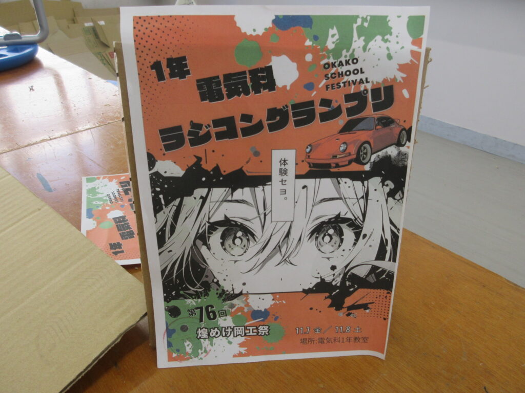 電1は、プログラミングや電子制御などの技術を駆使し、ラジコンの製作に挑みました。今年度は体育祭と岡工祭の期間が短く、準備がとても大変でしたが、限られた時間の中で精一杯取り組みました。以下、準備・当日の様子です。