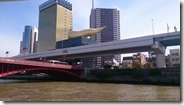 「朝、ホテルの窓からスカイツリーが見えました。豪華な朝食を済ませ、無事に出発しました。これから水上バスに乗ります。」