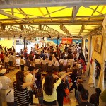 「浅草寺、仲見世通り散策中です。快晴。先ほどは日の出桟橋からクルージングを楽しみました。ここが最後と思うと悲しいです。予定通りです。富士山・東京コースが合流しました。これからお昼ごはんです。」