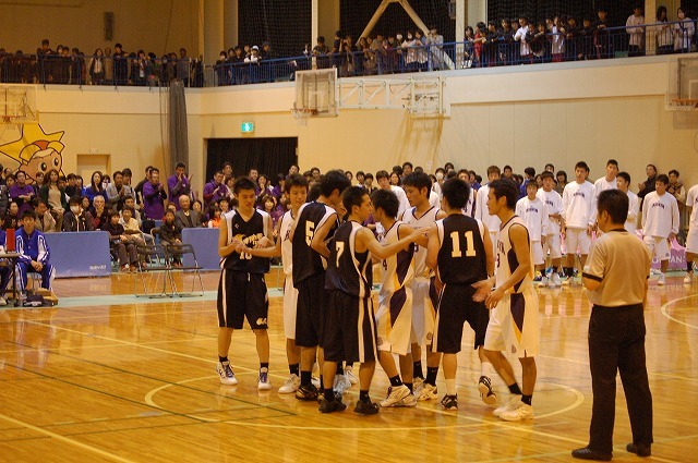 11月9日(土)に山陽ふれあい公園体育館で行われた準決勝では、商大附属高校と対戦しました。序盤は一進一退の展開となり、35-33で前半を終了しました。後半に入ると、持ち前の粘り強いディフェンスからの速攻が決まり始め、徐々に点差を広げて73-62で勝利し、決勝進出を決めました。