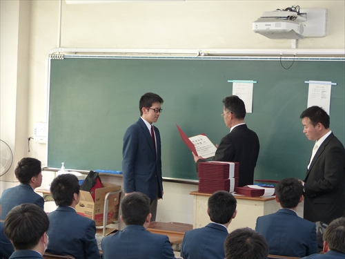 第69回卒業証書授与式 成30年3月1日(木) 平成29年度の卒業証書授与式が挙行されました。 317名の卒業生が、それぞれの進路に向けて本校を巣立って行きました。 式後、3年間の高校生活をまとめた動画の視聴や後輩による卒業生の似顔絵など最後のホームルームを行いました。 卒業証書授与 校長式辞 来賓祝辞(岡山県教育委員会) 送辞 答辞 記念品贈呈 機械科A組 機械科B組 土木科 化学工学科 デザイン科 建築科 情報技術科 電気科