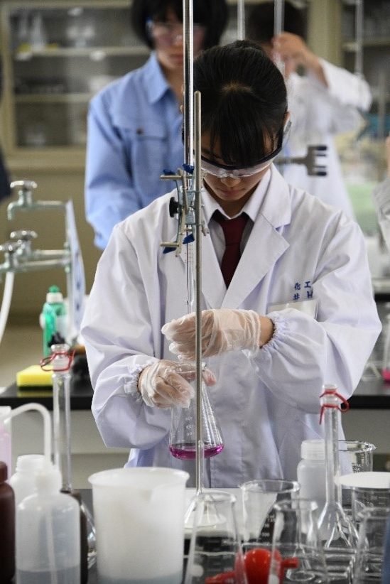 県下6校の工業化学系学科に在籍する生徒が12名集い、「キレート滴定法により、試料水中のCaとMgの定量を行い、各硬度を求める」という課題で競技しました。