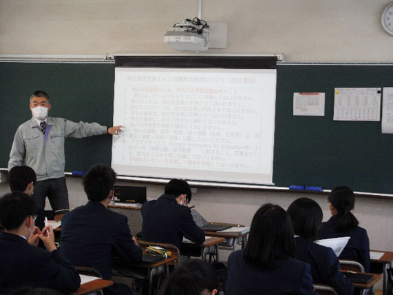 4限目にはChromebookの利用規定や禁止事項,ログインやアプリなどの講習がおこなわれました。