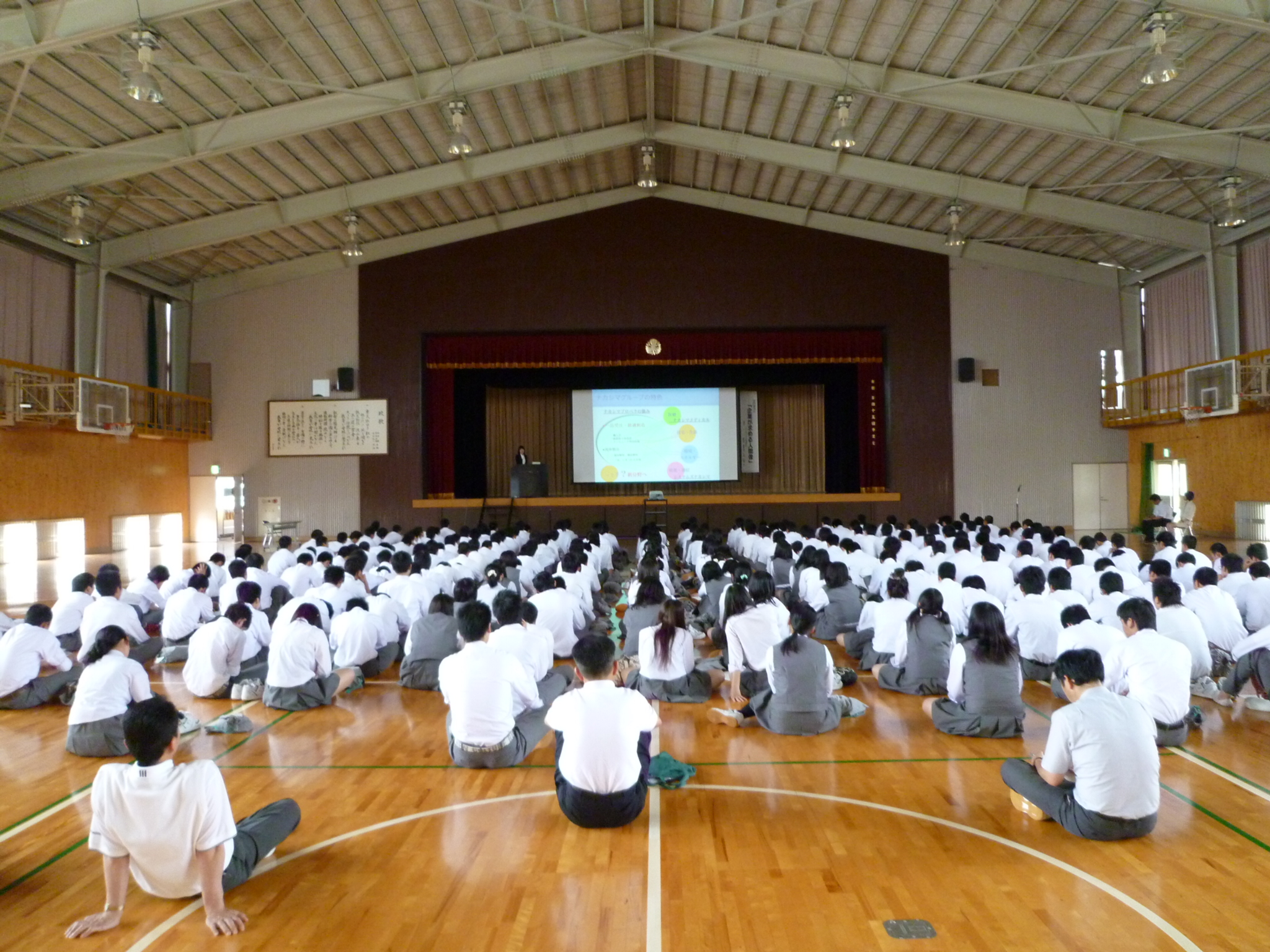 進学希望の生徒にとっても、数年後には厳しい就職活動に直面することになり、大変ためになったことと思います。3年生の皆さんが、今日のお話で学んだことを生かして自分の適性を見いだし、プラス思考で熱意を持って自らの進路を切り開いてくれることを期待しています。