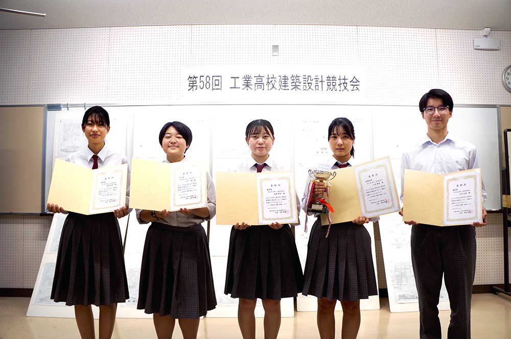 8月4日(金)に津山工業高校で開催された、「第58回工業高校建築設計競技会」において、建築科3年生5人が参加しました。結果は、下記の通りです。