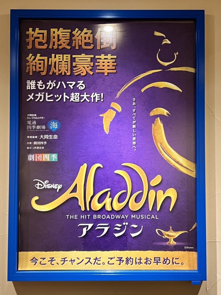【修学旅行】3日目 デザイン科 劇団四季 デザイン科は、劇団四季アラジンを観劇しました。オペラ歌手の瀧山久志さんによるジーニーの公演は、大人気でチケットが即完売!観劇後生徒から、来年「岡工祭は劇にしよう!」なんて声もあがりました。鳴り止まない拍手!心が震えました!