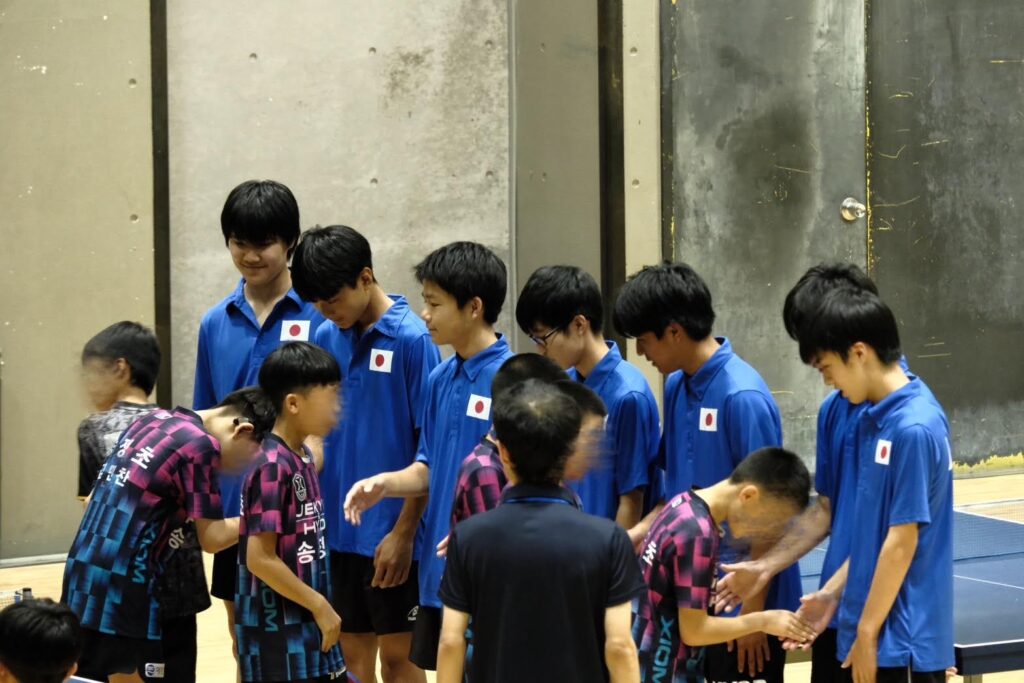 今大会では日本と韓国の小中学生の選手が交流試合をし、その審判や運営を岡工卓球部が行いました。国が違うため言語が違います。そのため、伝えたい事がうまく伝えられない場面がありました。しかし、選手も私たち審判も卓球という競技で繋がっているので、ジェスチャーなどで様々なことを伝える事ができました。部員の中には、韓国語に興味を持ち調べている人もいました。