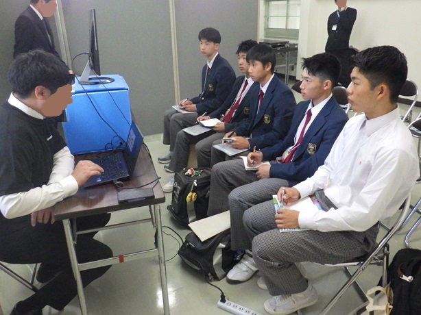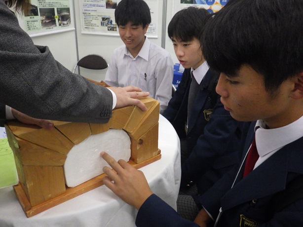 また、3年生の道路パトロール隊(課題研究)の代表者2名は、自身の活動を展示発表していました。多くの企業の方々の前で、堂々と説明している様子はとても立派で頼もしく感じました。