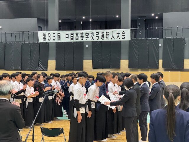 11月15日・16日に出雲だんだんトマトアリーナで行われた第33回中国高等学校弓道新人大会に男女団体,個人で出場してきました。