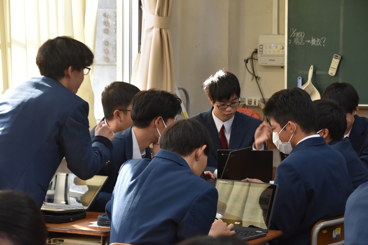 前回は、急きょクラス活動となったので、ずいぶん久しぶりのMIXホームルームでの活動でした。中間発表ができなかった一方で、プレゼンの工夫をしっかり考えることができていたので、今日のプログラムは比較的話が進みやすかったのではないでしょうか。しかし、クラスを回ってみると、「ここまでは案ができているのですが、ここから先が・・・。」と悩んでいる班もチラホラ。今が踏ん張りどころかもしれませんね。