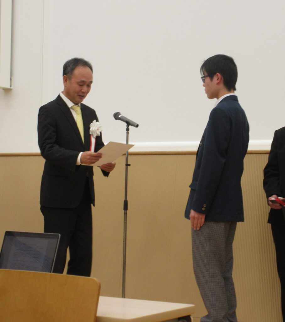 どちらの科の生徒も、魅力ある良い発表ができました。結果は化学工学科「岡山城の堀の水質浄化活動」の発表が最優秀賞をいただきました。また、デザイン科2年浦上有翔君がポスター賞を受賞しました。大会開催にあたり、関係者の皆様方には深く感謝申し上げます。