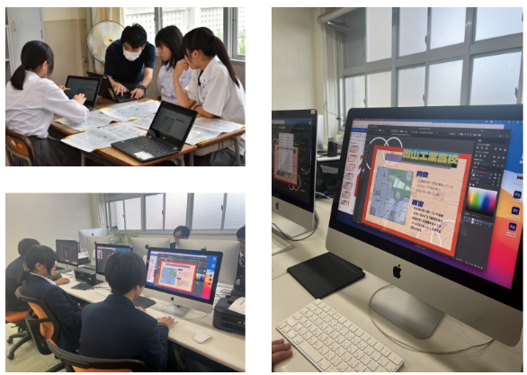 10月:アナログで作成した紙状の DIG マップを、岡工 STEAM ラボが引き継いでデジタルデータにした。(岡工STEAMラボ)