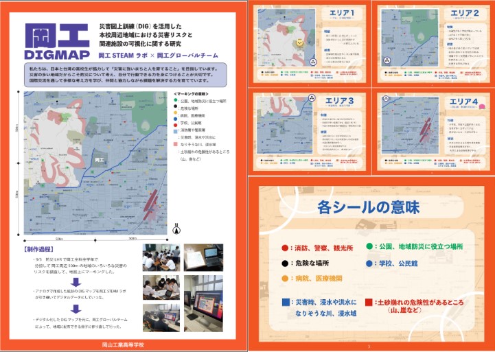 11月:デジタル化した DIG マップを元に、岡工グローバルチームによって、地域に配布できる冊子にブラッシュアップした。また、兵庫県立尼崎小田高校でDIGの研究報告を行った。(岡工グローバルチーム)