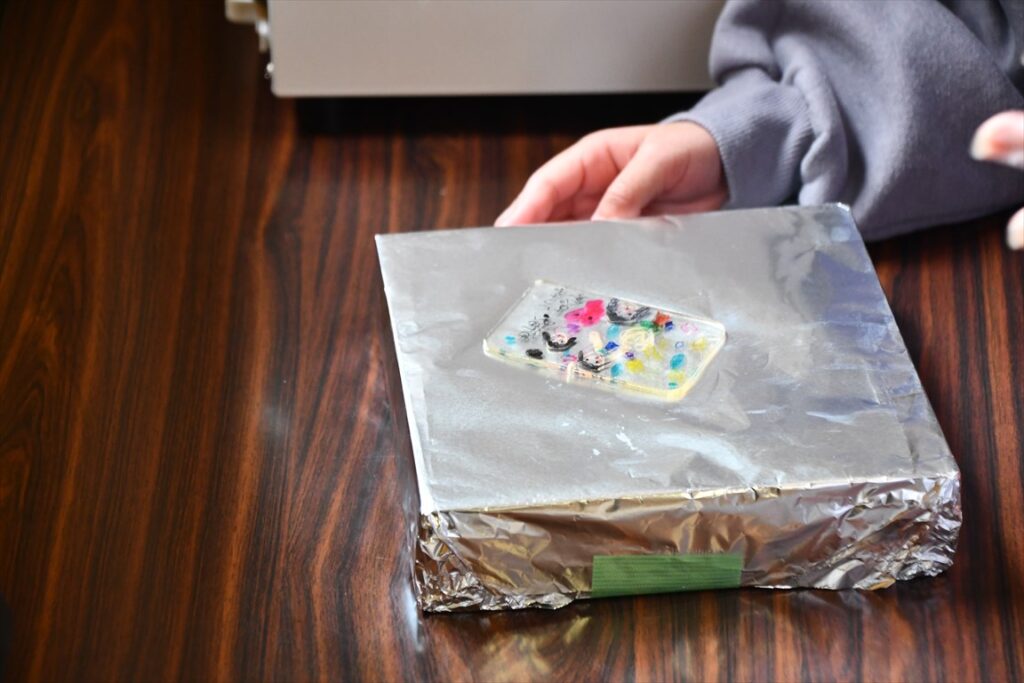 化学工学研究同好会はプラスチックの熱可塑性などの現象を利用した化学実験「オリジナルプラバン」、「人工カプセル」、「スライム」、「アルコールロケット」を行い、建築研究同好会は端材と半田ごてを用いた「キーホルダー作り」を行いました。