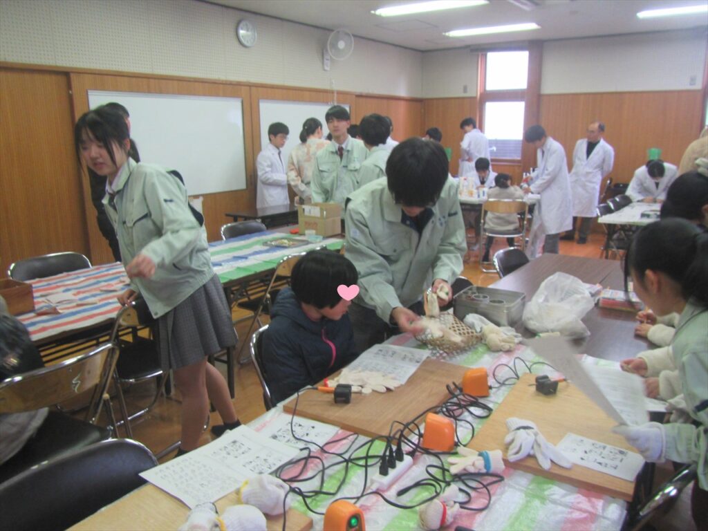 1/24(土)京山公民館にて「京山ESD・SDGsフェスティバル」が行われ、化学工学科(化学工学研究同好会)と建築科(建築研究同好会)がものづくり教室を行いました。
