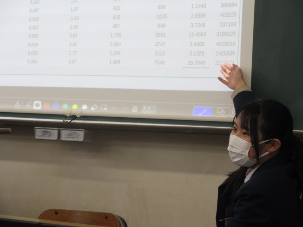 色々なテーマで仮説を立て、調査した内容を相関係数を用いて班ごとに発表しました。以下テーマです(^^) ユニークなものもありました。