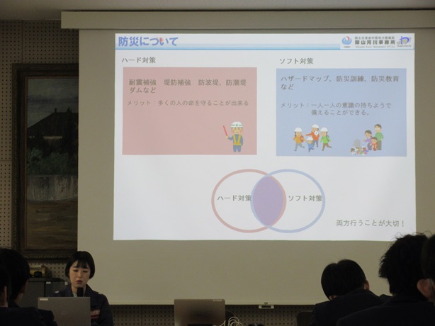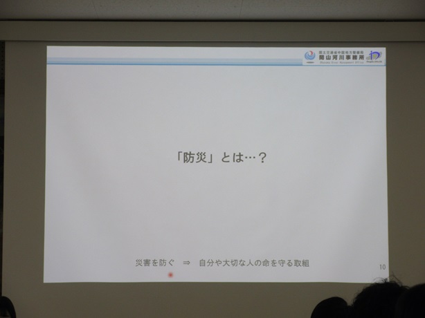 文末となりましたが、国土交通省中国地方整備局岡山河川事務所の福井様・尾方様、常盤工業株式会社広島支店の藤原様におかれましては、平日にもかかわらず、本校の防災・キャリア教育にご協力くださりありがとうございました。引き続き今後ともどうぞよろしくお願いいたします。
