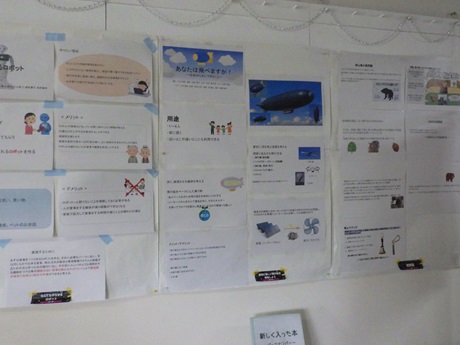 生徒のポスターは、今年も司書の先生が図書館前の壁面に掲示してくださいました。こうしてみると、改めてユニークな提案があったことがうかがえます。