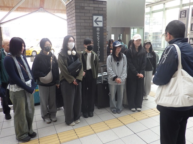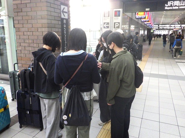 令和8年3月2日(月)第2回台湾姉妹校訪問研修に、生徒1・2年生合わせて9名と引率教員2名の総勢11名で岡山駅を元気に出発しました。