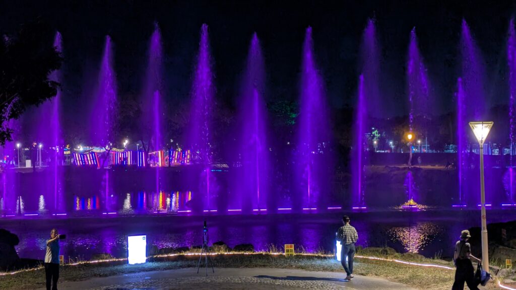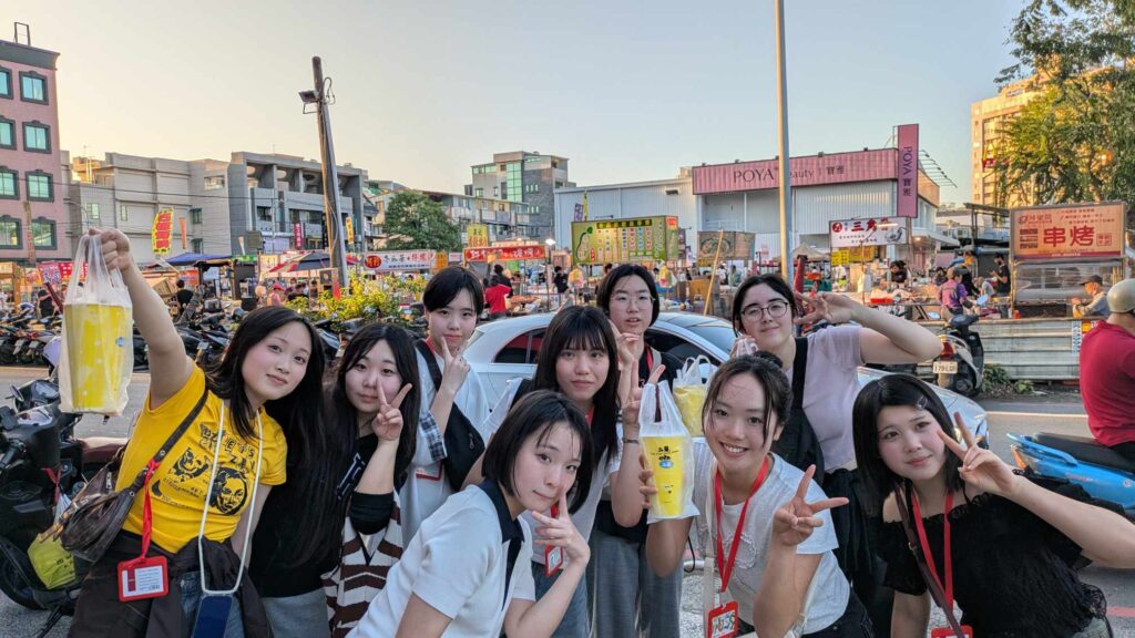 気温は30度と、とても暑いです!無事に高雄空港へ着いて、姉妹校のドミトリーに荷物を置いた後、台湾岡工の先生方と夜市や噴水ショーを楽しみました!
