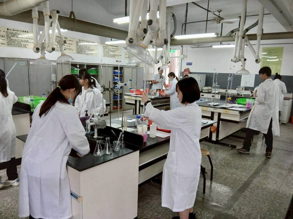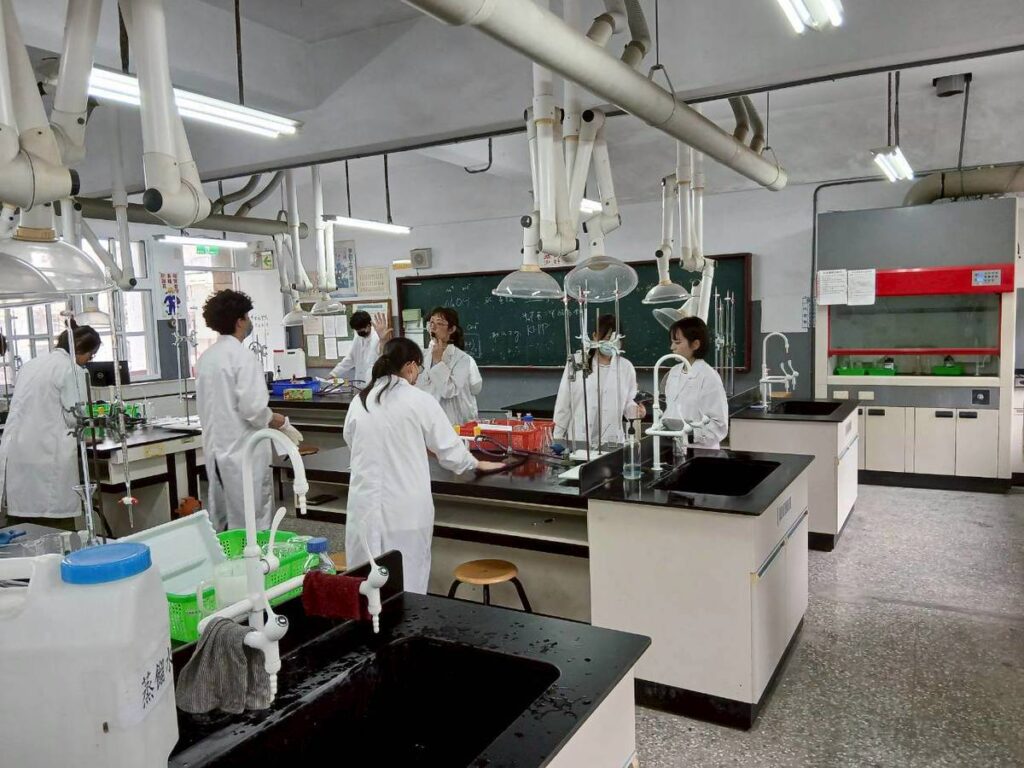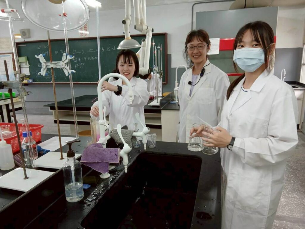 台湾岡工の化学工学科では、中和に関する実験に参加しました。