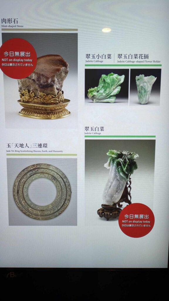 翡翠の「翠玉白菜」や豚の角煮に見える「肉型石」が有名です。
