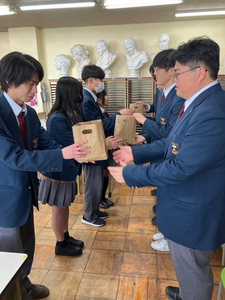 最後に部員からの贈り物(お菓子の詰め合わせセット)を渡しました。
