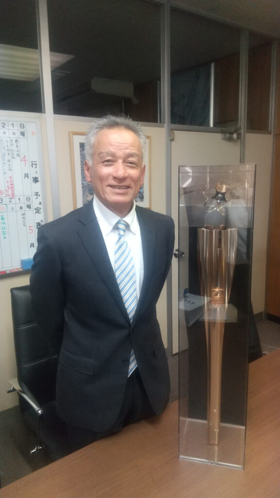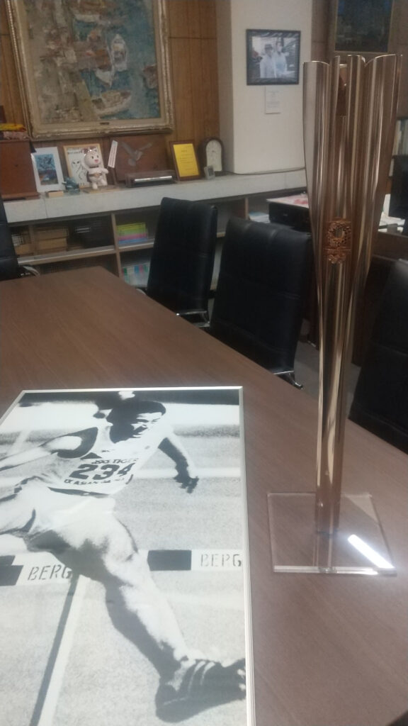 また、現役時代のパネルと聖火リレートーチを、「後輩のために役立つなら」と本校に展示させていただけることになりました。 先輩方の輝かしい足跡に触れることで、生徒たちがさらに高い目標を持ち、日々の活動に励むきっかけとなることを期待しています。