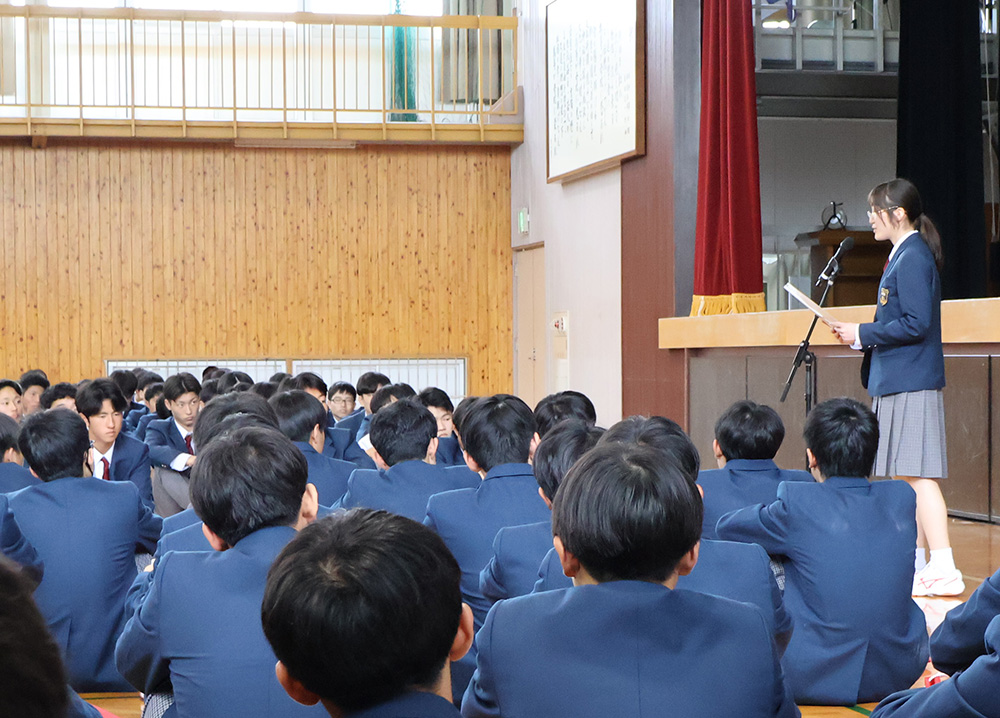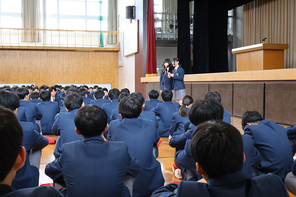 まずは生徒会入会式です。1年生から3年生までの全校生徒約950名が初めて同じ空間に顔を合わせました。体育館が全生徒で埋め尽くされた光景はまさに圧巻の一言で、新しい1年の始まりを感じさせる頼もしい時間となりました。